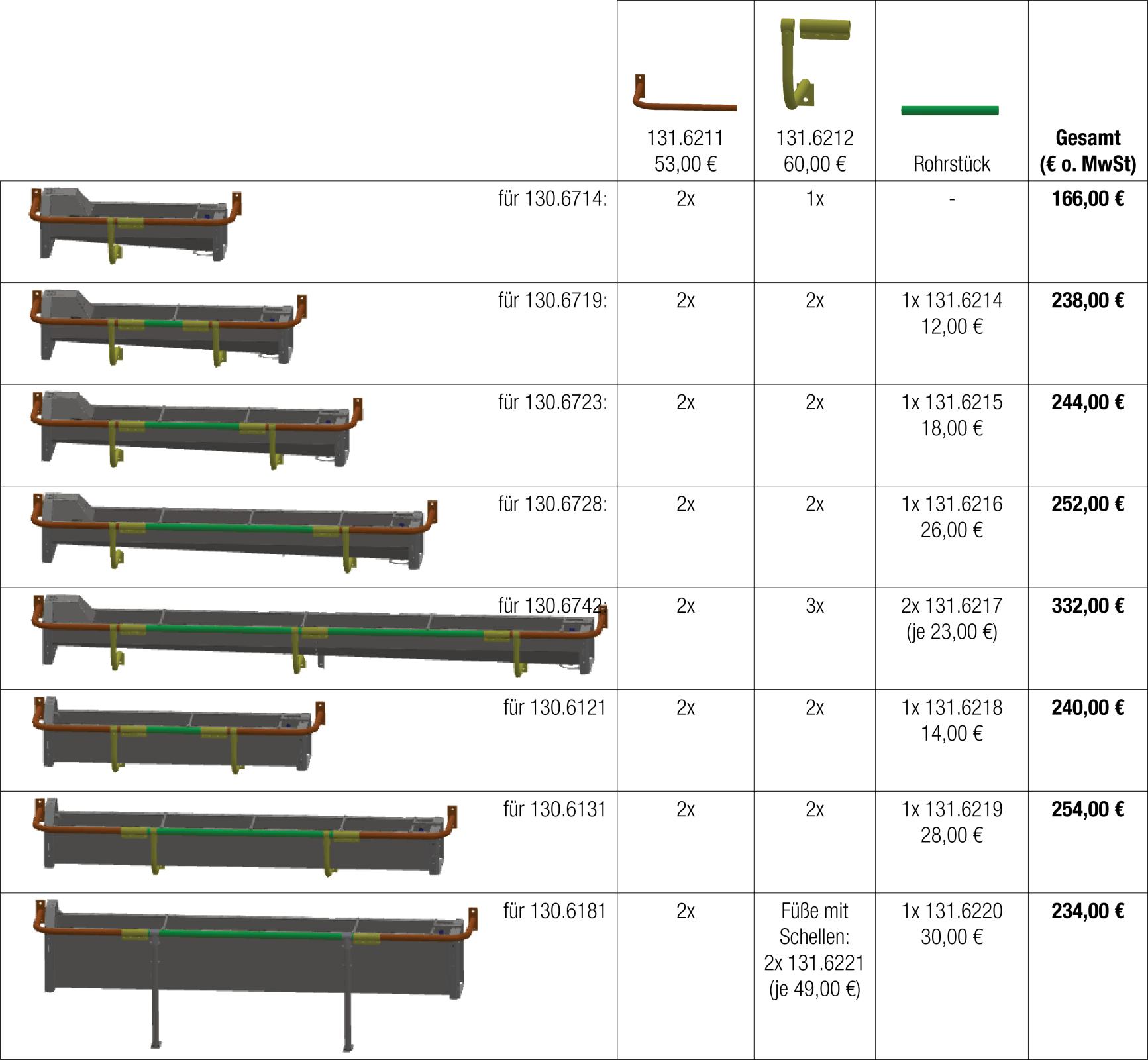 - Passende Durchlaufrohre: