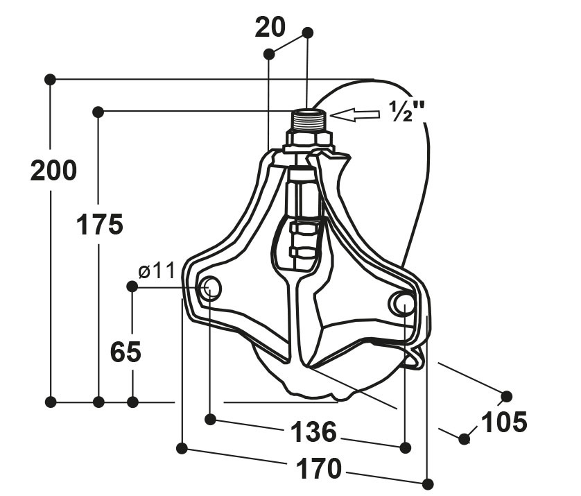 - Conexión con rosca exterior desde arriba por ½"